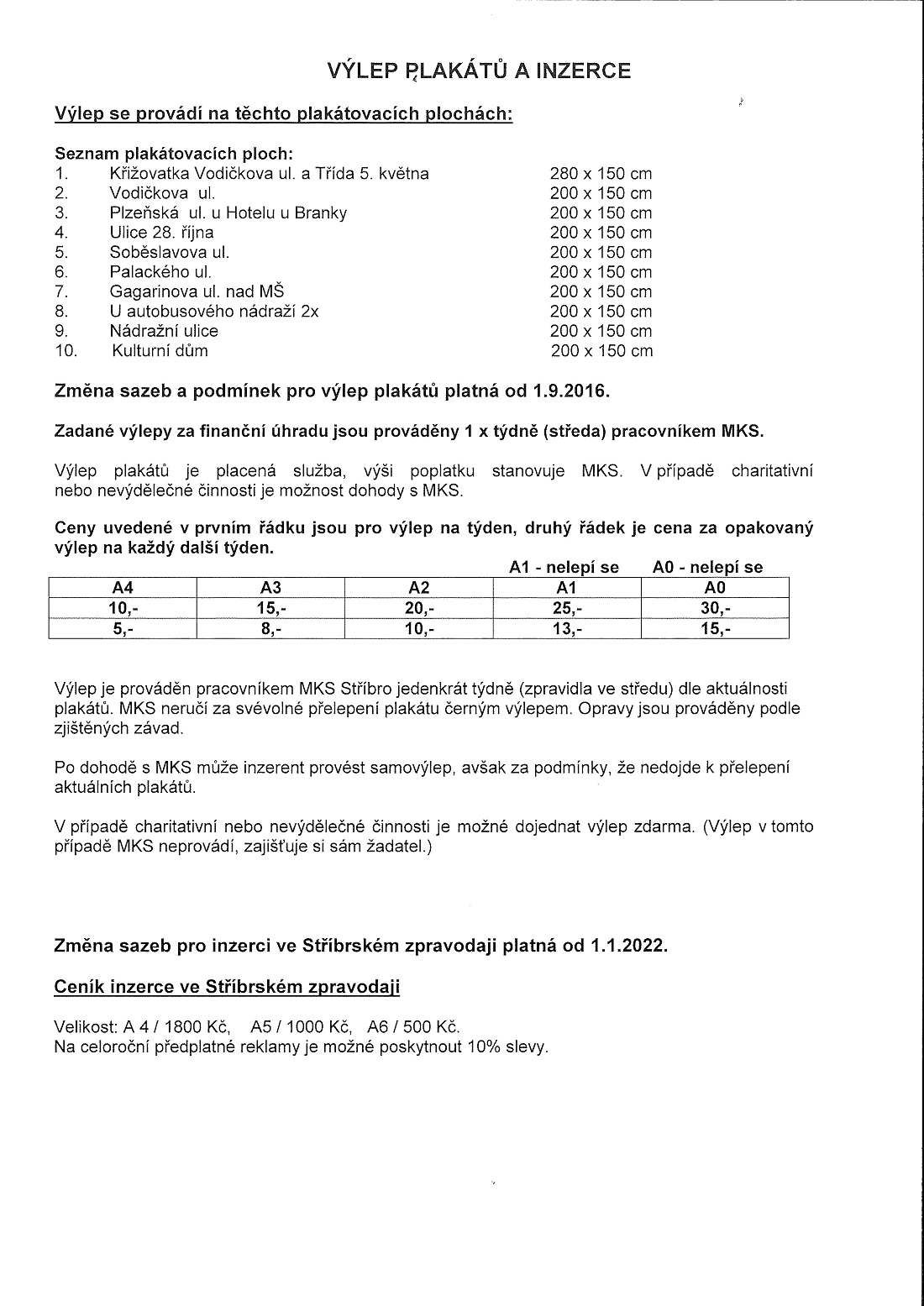 Výlepy plakátů a inzerce